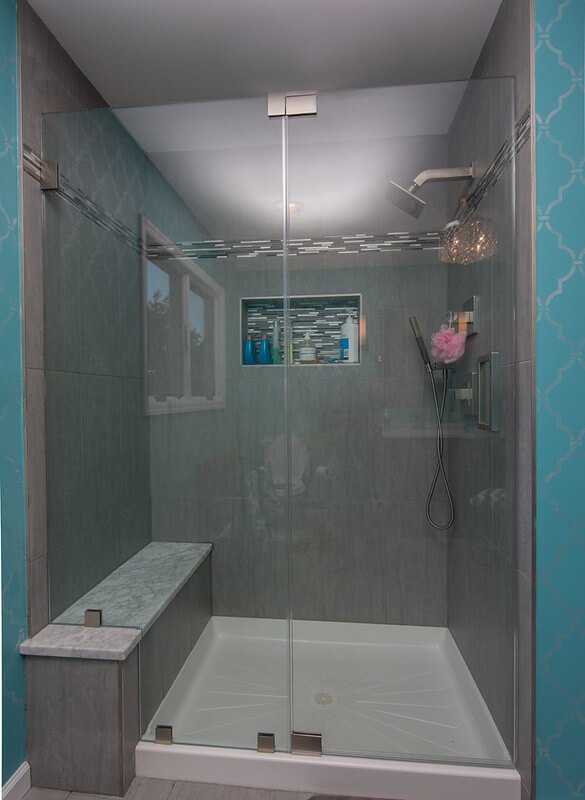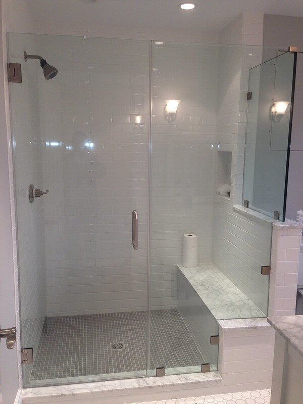Frameless Glass Shower Door Panel With Bench